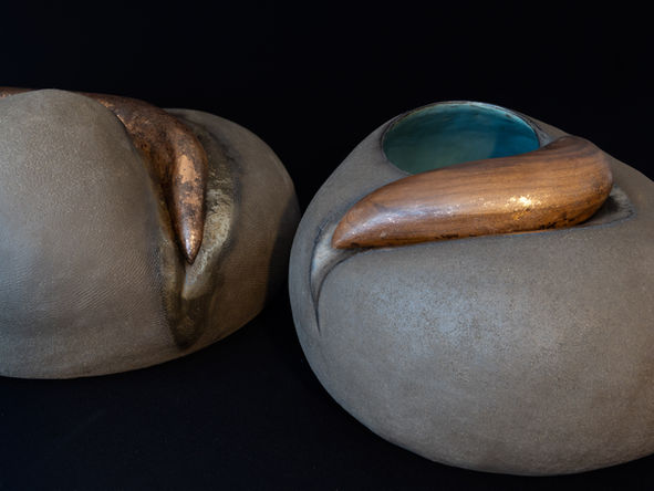 This collaboration brings together the practices of ceramic sculptor Rachel Hadari and wood and ceramic artist Adi Kitov. Their friendship formed in the wake of shared trauma. Though they had known of each other for years, their bond deepened only when their personal worlds shifted. In the studio, a quiet trust emerged. What began as friendship grew into collaboration. They worked through their practices individually yet found a shared rhythm in the belief that making could become a form of listening, witnessing, and support. This body of work reflects that connection. It is shaped by care, by presence, and by the decision to carry the pain together. Their materials express what words cannot. Each point of golden contact becomes a trace of understanding, a shared weight, and a reflection of the strength found in holding and being held.